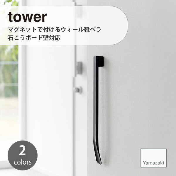 tower タワー (山崎実業) マグネットで付けるウォール靴ベラ 石こうボード壁対応 Wall-Mounted Magnetic Shoehorn, Drywall Compatible 靴べら 靴ベラ くつべら シューホーン 玄関 エントランス 磁石 浮かせて収納 壁収納