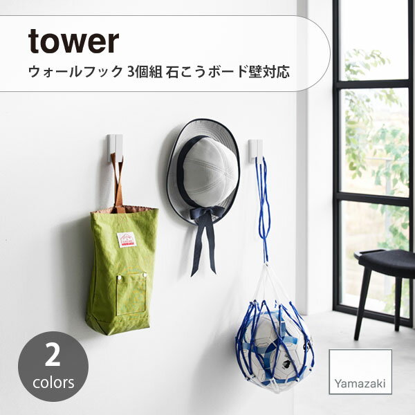 tower タワー (山崎実業) ウォールフック 3個組 石こうボード壁対応 Wall Hooks - Set Of 3, Drywall Compatible 石膏ボードピン 浮かせて収納 玄関 キッチン 子ども部屋 バッグ リュックハンガー 帽子 マルチフック カーテンタッセル キーフック