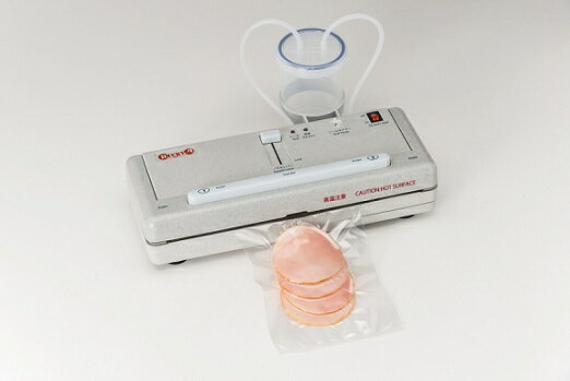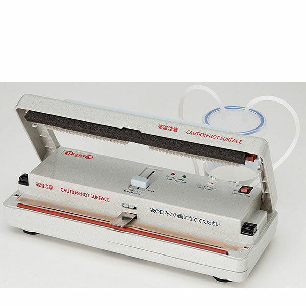●サイズ:幅345×奥行165×高さ90mm ●重量:2.75kg ●シール長さ×幅:270×4mm ●電源:AC100V 50/60Hz ●消費電力:135W ●本格家庭用真空パック器 ●真空パックで食品の酸化を抑え鮮度をキープ、まとめ買いしても安心です。 ●食品の鮮度だけではなく、食品本来の美味しさや栄養価も保存が可能となり、いつでも美味しく健康的な食生活をおくることができます。 ●袋を選ばないので、漬物や乾物など、食べかけでも買った袋でそのまま真空できます。 ●小分け保存や整理整頓に便利です。 ●ニオイ移りの心配もありません。 ●食品だけでなく、ローソクや紙おむつなど日用品・防災用品にも使えます。 ●水気のあるものでも集水タンクがあるので安心です。 ※小麦粉のような粉モノはご遠慮ください。 ●お湯を吸わせて内部やノズルの掃除も簡単にできます。 ●やわらかいパンや、割れやすいせんべいにも使えます。 ●本体上部のON/OFFスイッチ付近に凹みについては製造上の問題であり、製品の品質構造には問題はございません。 上記の本体の状態を不良としての返品、交換はお受けかねます。 ご了承の上、お買い求め下さいませ。 ●真空能力:-60kPa ●推奨連続使用:2回/分 ●シールのみ:1回/分 ●使用可能袋:幅270mm、総厚み〜0.18mm、平袋 ※ビニール袋でも真空パックは可能ですが、袋自体が空気を通すため、時間の経過とともに空気が入ります。長時間の保存にはナイロンポリ素材等の真空パック用袋をご利用ください。 ※シールのみでの連続使用は極力お控えください。各部の劣化が早まる事があります。 ●付属品:チューブ (短)×1、チューブ (長)×2、集水タンク ×1、集水タンクホルダー ×1、取り扱い説明書 ×1、ヒーター線 ×2、テフロンテープ ×2、ノズル清掃器具 ×1、サンプル袋セット ×1