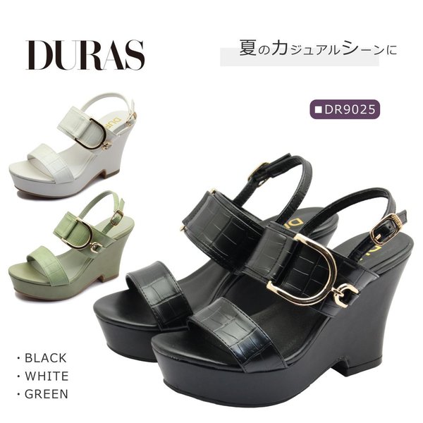 DURAS デュラス レディース サンダル バックストラップ ウェッジ DR 9025 厚底 靴 黒 白 緑 ブラック ホワイト グリーン