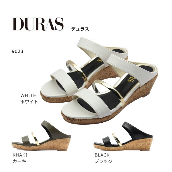 DURAS デュラス レディース サンダル ミュール ウェッジ コルク 9023 靴 ブラック ホワイト カーキ