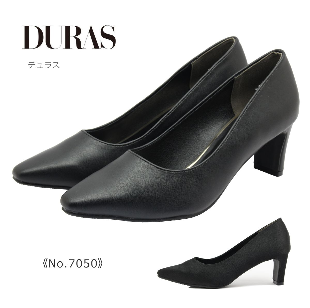 DURAS デュラス レディース パンプス DR 7050 ポインテッドトゥ プレーン フォーマル 靴 黒 ブラック サテン