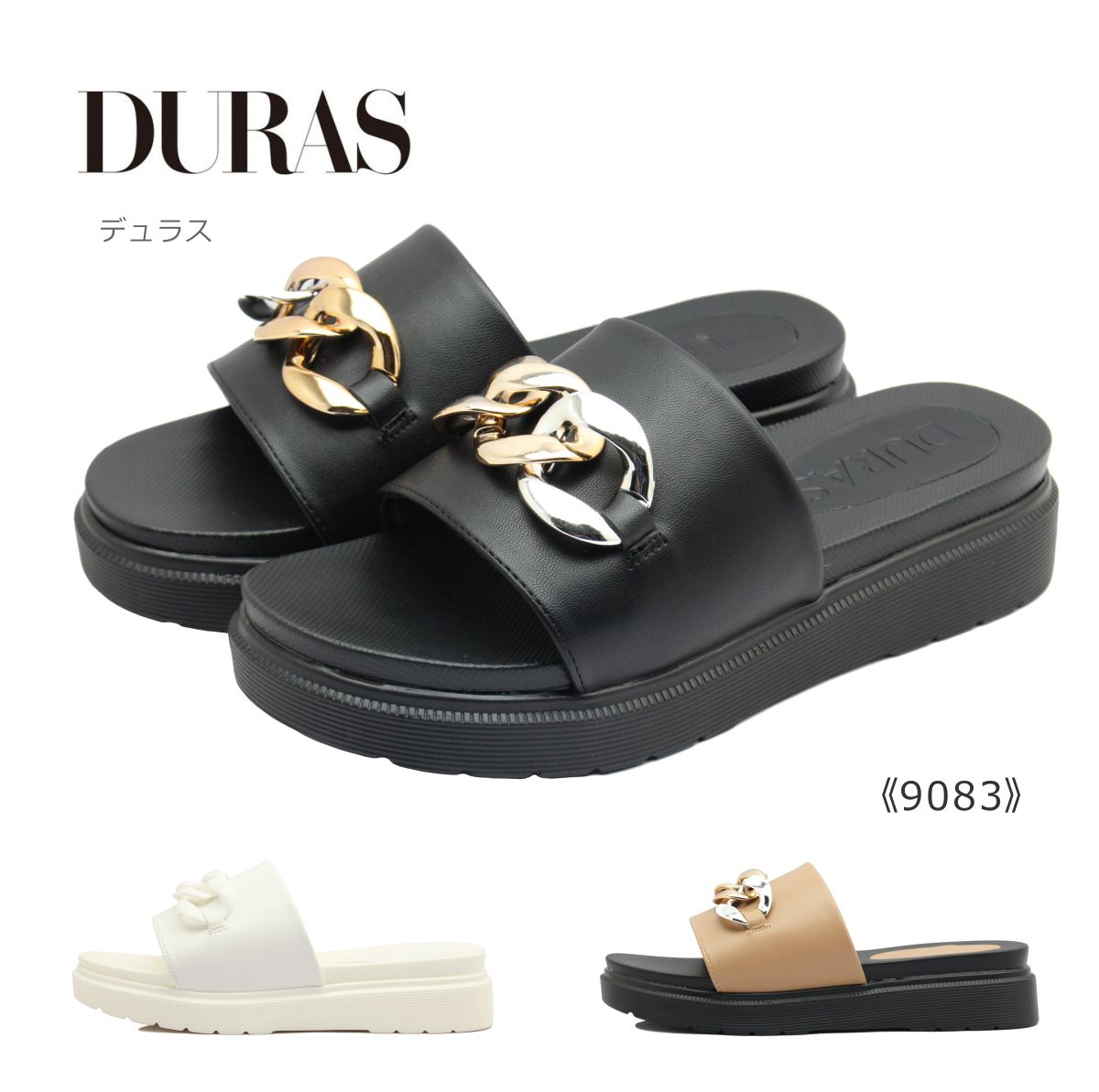 DURAS デュラス レディース ミュール DR 9083 サンダル フラット 厚底 靴 黒 白 ブラック ホワイト ベージュ