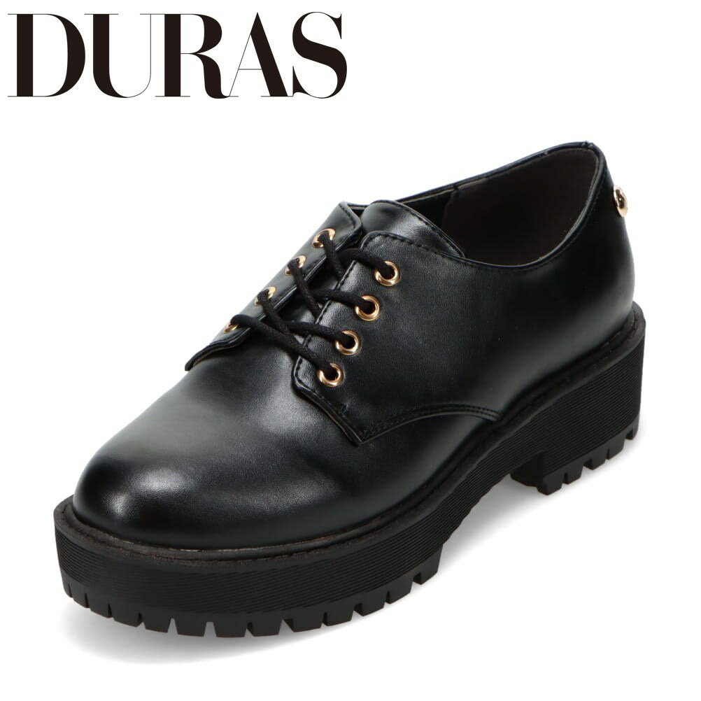 デュラス DURAS ラウンドトゥ厚底カジュアルシューズ (BLK)