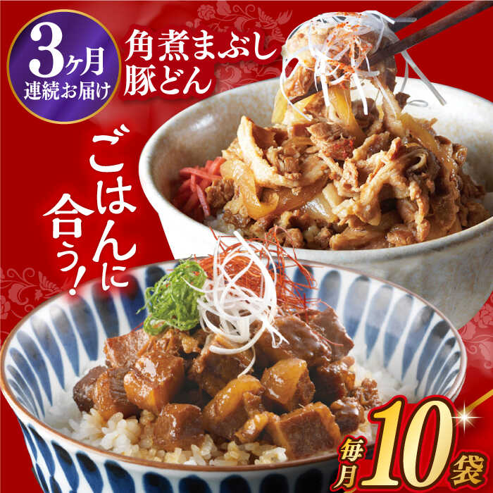 【ふるさと納税】【3回定期便】【簡易包装】長崎角煮まぶし5袋&豚どん5袋 長与町/岩崎本舗 [EAB077] 角煮 かくに まぶし 豚丼 豚どん ぶたどん レトルト おかず 小分け 冷凍 長崎本舗 定期便 定期 3回 3ヶ月