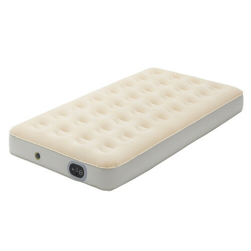 アイリスオーヤマ EAB−S 電動エアーベッド シングル アイボリー発売日:2022年2月18日●約50秒でふくらむ電動タイプのエアーベットです。●電動ポンプ内臓で、エアーの注入・排出もワンタッチで簡単にできます。●25cmのボリュームで、固い床の上でも底付きが感なく、ふかふかな寝心地です。●なめらかな肌触りのベロア調仕立てです。●アウトドアや車中泊、災害時の避難用品として、幅広くご使用いただけます。●小さく畳んで、コンパクトに収納できます。持ち運びも楽々です。 【仕様】本体サイズ(幅×奥行×高さ):990×1900×250mm本体重量:3.55kg耐荷重(約):100kg空気注入時間(約):50秒電源:AC100V(50/60Hz)消費電力:140Wセット内容:本体、収納袋、リペアセット、コード主要材質:PVC、レーヨン(ベロア調仕上げ)