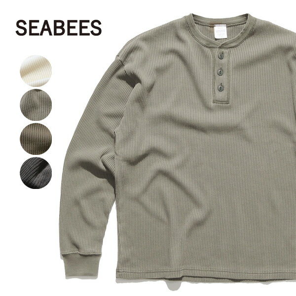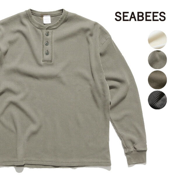 シービーズ【SEABEES】2423-SB12 Pigment Henry neck Thermal L/S ヘンリーネック サーマル ロングスリーブ 長袖 ロンT ピグメントダイ メンズ トップス アイボリー グレー オリーブ ブラック【送料無料】