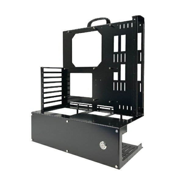 PCパーツが主役のE-ATX向けオープンフレーム。パーツ検証用のPCフレームとしてもご使用頂けます。■PCパーツが主役!! 様々なレイアウトが可能な大型オープンフレームmini-ITX・mini-DTX・micro-ATX・ATX・Extended-ATX・SSI-EEBまで対応可能です。パーツ検証用のPCフレームとしてもご使用頂けます。■グラフィックボードは垂直設置にも対応可能グラフィックボードのフロントを魅せる設置が可能です。垂直設置用のVGA保持ステイ搭載。※ライザーケーブル別売り■取っ手付きで持ち運びにも最適です 取っ手は取り外し可能です。※持ち上げる際は片手をフレーム底面に添えて持ち運び下さい。■ラジエーター用の取付穴をフレーム側面と背面に搭載しております対応サイズは 120mm/140mm/240mm/280mm/360mmとなります。※片側留めとなります。また240mm以上は一部ネジ留めができません。■角度調整式ラジエーターステイを搭載。より自由な配置を可能にしましたラジエーターだけでなく、SSDやHDD等の取り付けも可能です。角度は [ 0°・ 30°・ 60°・ 90°・ 120°・ 150°・ 180°]の7段階の調整が可能です。※片側留めとなります。また280mm以上は一部ネジ留めができません。 ラジエーターステイは1本となります。■ATX電源を最大2台まで取り付けが可能です。搭載可能なストレージ数ATX電源 1台の場合: 2.5インチ 8台 + 2台 / 3.5インチ 4台 まで取り付けが可能です。ATX電源 2台の場合: 2.5インチ 2台 / 3.5インチ 2台 まで取り付けが可能です。※ストレージの取り付けは片側2点留めとなります。ATX電源2台の場合、3.5インチHDDはラジエーター用取付穴を利用しての取り付けとなります。また電源は別売りとなります。■ATX電源を2台取り付ける場合は電源スイッチ取付位置の変更が必要です。スイッチ金具付属。従来の電源スイッチ穴を塞ぐ、キャップも付属しております。【ご注意】本製品はお客様組立品となります。一部のパーツ、または設置環境において、取付が出来ない場合が御座います。本製品の使用によって生じた直接又は間接的な傷・損害・故障については弊社はその責任を負わないものとします。お子様には本製品・付属品等に触れないようご注意下さい。怪我又は誤飲の恐れが御座います。仕様、外観など改良のため、予告なく変更する場合が御座います。ご了承下さい。画像等に記載されている製品名、会社名、ロゴ等は各社の商標または登録商標になります。切断面のバリ取りは入念におこなっておりますが、取付の際に怪我のないようご注意下さい。製造工程において、軽微な擦り傷・塗装ムラ等が生じる場合が御座います。ご了承下さい。本製品はオープン構造になっているので、定期的にメンテナンス及び清掃をお願い致します。 ※本商品が対象となるクーポンは、その期間終了後、同一内容でのクーポンが継続発行される場合がございます。