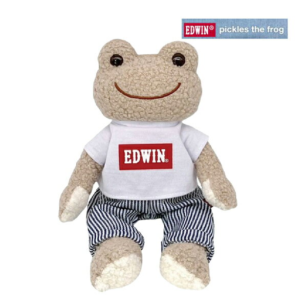 ぬいぐるみでおなじみのナカジマさん人気シリーズ「pickles the frog /カエルのピクルス」から デニムジーンズでお馴染みの「EDWIN/エドウィン」コラボピクルスが登場です。今回のエドウィンはつなぎを着たピクルス。胸には刺繍入り背中にも赤い文字の刺繍。ピクルス本体は草のような色合いでとても素敵です。ピクルスファンのコレクションアイテムの一つとして欠かせない商品です。サイズ :H16×W20×D15cm