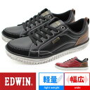 10%OFF クーポン + Pt 5倍|EDWIN スニーカー メンズ 軽量 PUレザー 革 カジュアルシューズ ローカット ヴィンテージ着色加工靴底 紐靴 おしゃれ 紳士靴 エドウィン EDM345|正規販売店