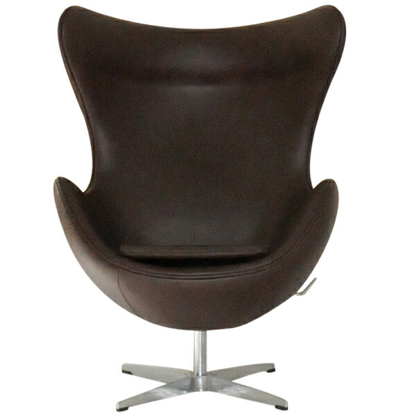 エッグチェア レザー仕様 色ダークブラウン 総本革 アルネヤコブセンによるデザイン リプロダクト ジェネリック デザイナーズ家具 イス いす 椅子 パーソナルチェア カウンターチェア ラウンジチェア 卵型