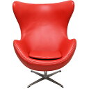 エッグチェア レザー仕様 色レッド 総本革 アルネヤコブセンによるデザイン リプロダクト ジェネリック デザイナーズ家具 イス いす 椅子 パーソナルチェア カウンターチェア ラウンジチェア 卵型