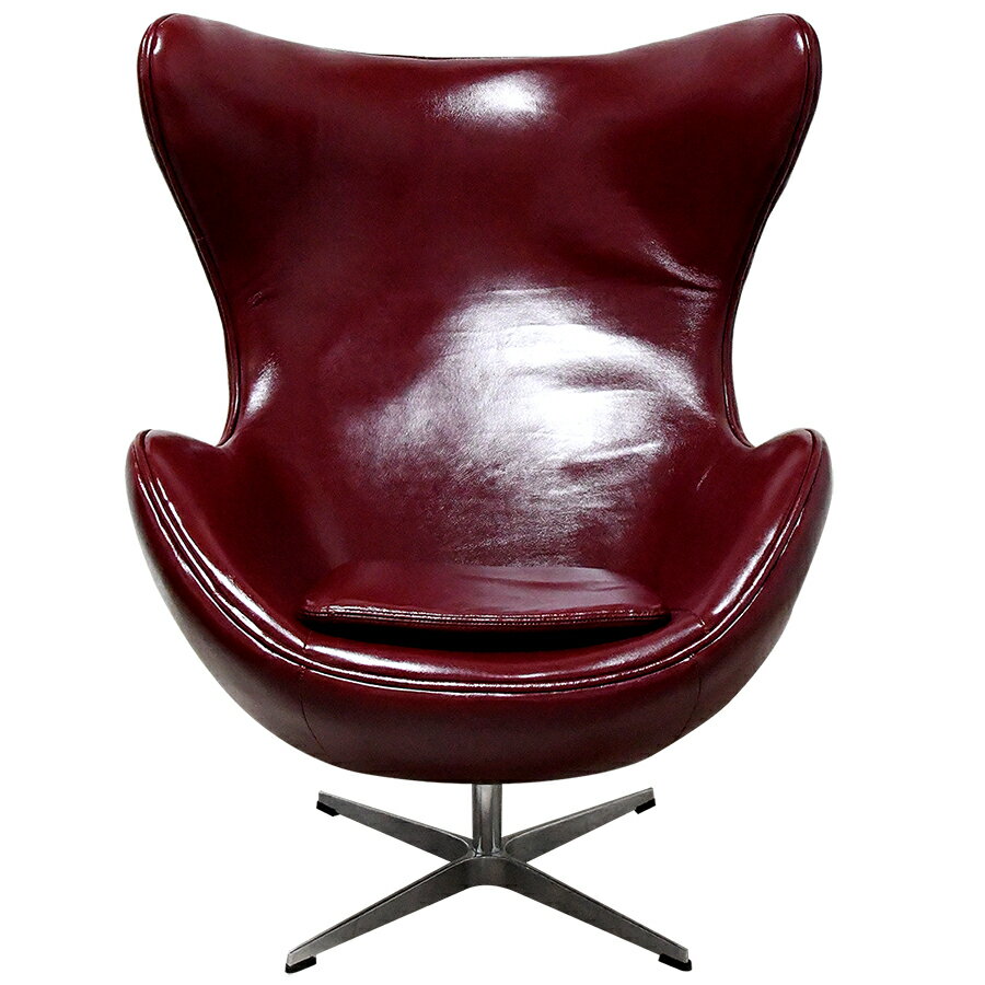 エッグチェア レザー仕様 色ワイン 総本革 アルネヤコブセンによるデザイン リプロダクト ジェネリック デザイナーズ家具 イス いす 椅子 パーソナルチェア カウンターチェア ラウンジチェア 卵型