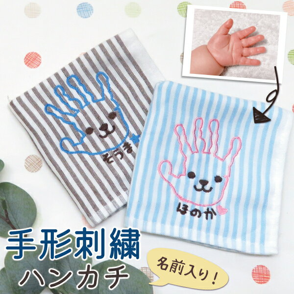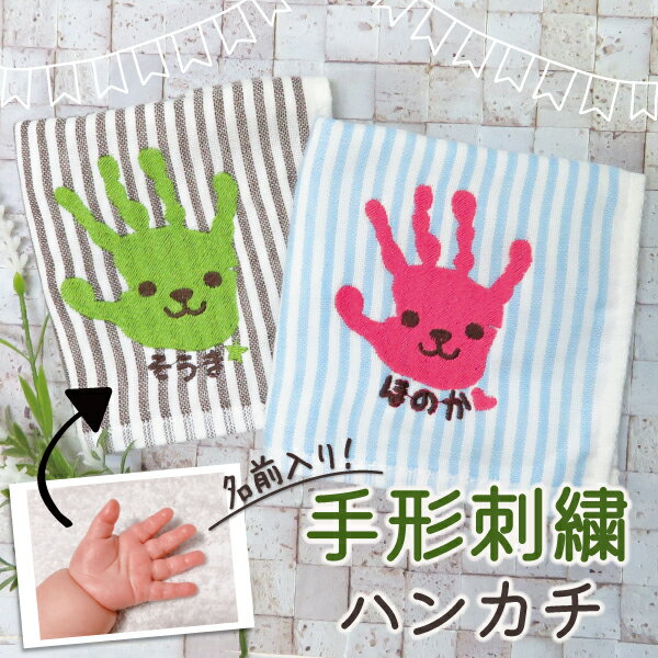 手形 足形 赤ちゃん ベビー メモリアル 手形足形 赤ちゃん ハンカチ 刺繍 プレゼント ギフト 孫 出産祝い 出産内祝い 内祝い 出産 祖父母 誕生日 記念品 還暦祝い オーダー オーダーメイド おじいちゃん おばあちゃん