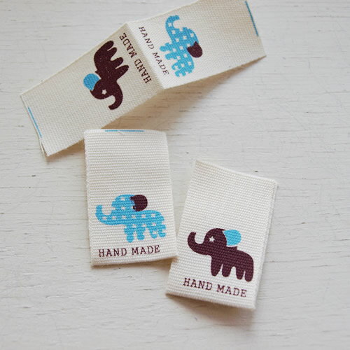 ハンドメイド タグ コットンタグ ビスタグ カラフルぞうさん エレファント 青 ブルー ピスネーム手芸 縫付タグ フレンチタグ かわいい おしゃれ 卸販売