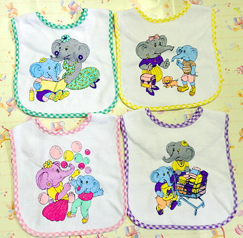 ビブスタイよだれかけベルクロビブ4枚セット&エレファント柄
