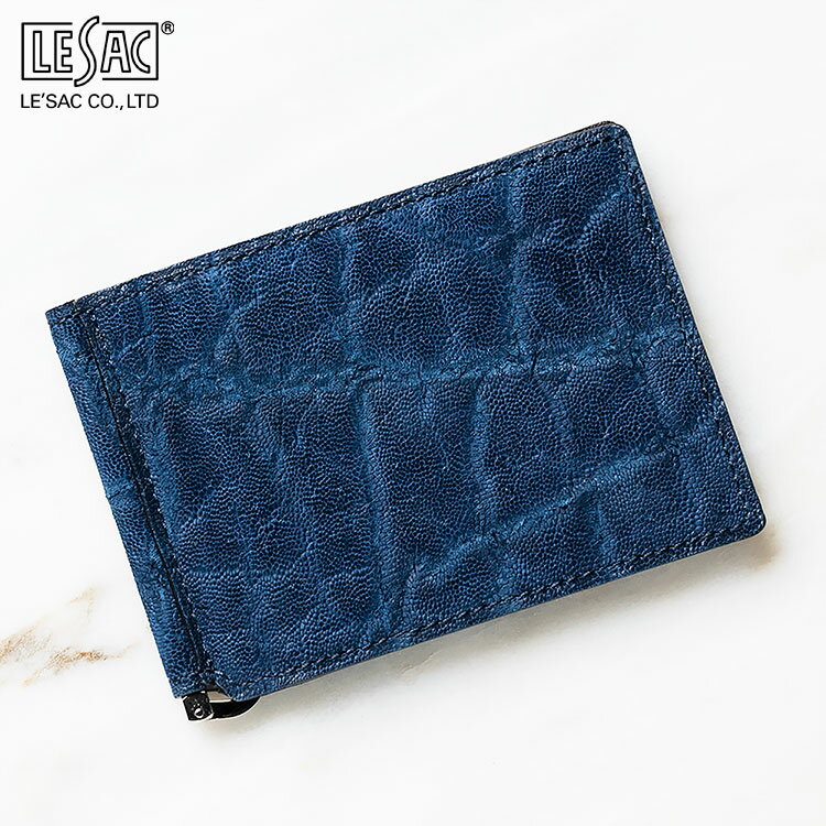 エレファント 象革 財布 二つ折り財布 マネークリップ 札ばさみ LE'SAC レザック インディゴ ブルー/青 メンズ 薄型 コンパクト 手のひらサイズ 8184 正規取扱品 開運 金運 日本製