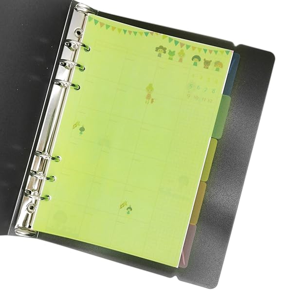 商品图片 A6/ A5 6穴 カラフル PP カバー ラウンド リング ビュー バインダー ファイルフォルダー ルーズリーフシートプロテクター用(A6 Combo, Sunny Lime)