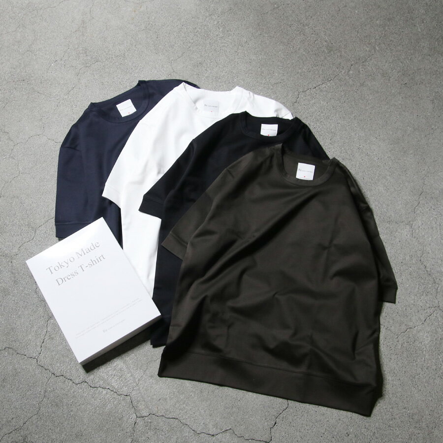 もはや定番となった[DRESS T]シリーズからリラックスしたニット感覚の新デザインがリリース! Re made in tokyo japan(アールイー メイド イン トウキョウ ジャパン)から Half Sleeve Wide Dress T-shirt がリリース。 定番のドレスTシャツよりも 1サイズ程度のゆとりのあるワイドなリラックスシルエットがニットやスウェットを意識したデザインが印象的。ワイドな身頃と、袖を太めの切り替えリブで少しだけ絞りを入れたリラックスでハリがあり立体的でバランス良いシルエットがポイント。 採用した素材は、インド南部デカタン高原の大地に育まれた最高級超長綿『マハラニコットン糸』を使用しています。抜群の繊維長による繊細で上品な生地の表情と、高いコットンオイル含有率でしっとりとした風合いを実現しています。120番という高級ドレスシャツに使用されるような極細糸に紡績し2本を撚り合わせて編み上げらた手間のかかる仕上げも◎。 このモデルは、通常のTシャツに選ばれる『天竺編み』ではなく、『両面編み(スムース)』に仕上げています。独特のハリとコシがあり、艶やかで綺麗な表情が特徴で、また透けにくく洗濯耐久性にも優れています。そして表と裏が全く同じ編み方になるので、裏面も表面と同じくなめらかで繊細、肌にあたる風合いも良いので着心地も抜群です。 生産しているファクトリーにも拘りが溢れています。東京のニット生地専門メーカーと40年以上の業歴を誇る東京・両国の専属縫製工場で高い技術を持った職人さんが丁寧に作っています。衿裏には共布バインダーで補強しステッチは重厚かつ繊細な細二本針で縫製しています。 縫製糸は欧州製の高級Tシャツに使われることの多い伸縮性に優れ品のある光沢を放つウーリー糸を使用しています。 拘りの専用BOXに入った販売も[DRESS T]ならではです。素材・デザイン・ディティール、全てにこだわりを持ってつくられる、高品質のTシャツは、大切な人へのギフトとしても最適。 ○洗濯機による液温を30℃までを限度としたお客様各自のお洗濯が可能です。 ●ドライクリーニングが可能です。 ○低温度(80℃〜130℃)のアイロン掛けのお手入れが可能です。 ●塩素系漂白剤による漂白はできませんのでご注意下さい。 ・商品の詳しいサイズの測り方 ●若干の誤差がございますのであくまで目安としてお考え下さい クリックすると一覧ページにリンクします。 クリックすると一覧ページにリンクします。 クリックすると一覧ページにリンクします。 クリックすると一覧ページにリンクします。 >Re made in tokyo (アールイーメイドイントウキョウジャパン) No6022S-CT [ Half Sleeve Wide Dress T-Shirt ] ハーフスリーブ ワイド ドレス Tシャツ(6色) MODEL/175cm/62kg/WHITE/NAVY/Size[L]着用 ↑クリックすると【Re made in tokyo Japan 】の商品一覧ページにリンクします 【Re made in tokyo japan /アールイーメイドイントウキョウジャパン】 独自の視点で物の持つ本質を伝えてくれるブランド 早川、坂倉、両氏が手掛ける「made in japan」に拘ったブランド【Re made in tokyo japan (アールイーメイドイントウキョウジャパン)】 イタリアやフランス等のファクトリーブランドが持つ職人気質な拘りや技術を継承しつつ、日本のファクトリーが持つポテンシャルやデザイナーの意思が全てのコレクションの中のアイテムひとつひとつに込められています。 著名メゾン等を手掛けるなどした、その高い技術に裏打ちされたコレクションは必見です。 素材やパーツ、縫製に至るまで、全て日本のファクトリーで行っている拘りのブランドです。 もはや定番となった[DRESS T]シリーズからリラックスしたニット感覚の新デザインがリリース! Re made in tokyo japan(アールイー メイド イン トウキョウ ジャパン)から Half Sleeve Wide Dress T-shirt がリリース。 定番のドレスTシャツよりも 1サイズ程度のゆとりのあるワイドなリラックスシルエットがニットやスウェットを意識したデザインが印象的。ワイドな身頃と、袖を太めの切り替えリブで少しだけ絞りを入れたリラックスでハリがあり立体的でバランス良いシルエットがポイント。 採用した素材は、インド南部デカタン高原の大地に育まれた最高級超長綿『マハラニコットン糸』を使用しています。抜群の繊維長による繊細で上品な生地の表情と、高いコットンオイル含有率でしっとりとした風合いを実現しています。120番という高級ドレスシャツに使用されるような極細糸に紡績し2本を撚り合わせて編み上げらた手間のかかる仕上げも◎。 このモデルは、通常のTシャツに選ばれる『天竺編み』ではなく、『両面編み(スムース)』に仕上げています。独特のハリとコシがあり、艶やかで綺麗な表情が特徴で、また透けにくく洗濯耐久性にも優れています。そして表と裏が全く同じ編み方になるので、裏面も表面と同じくなめらかで繊細、肌にあたる風合いも良いので着心地も抜群です。 生産しているファクトリーにも拘りが溢れています。東京のニット生地専門メーカーと40年以上