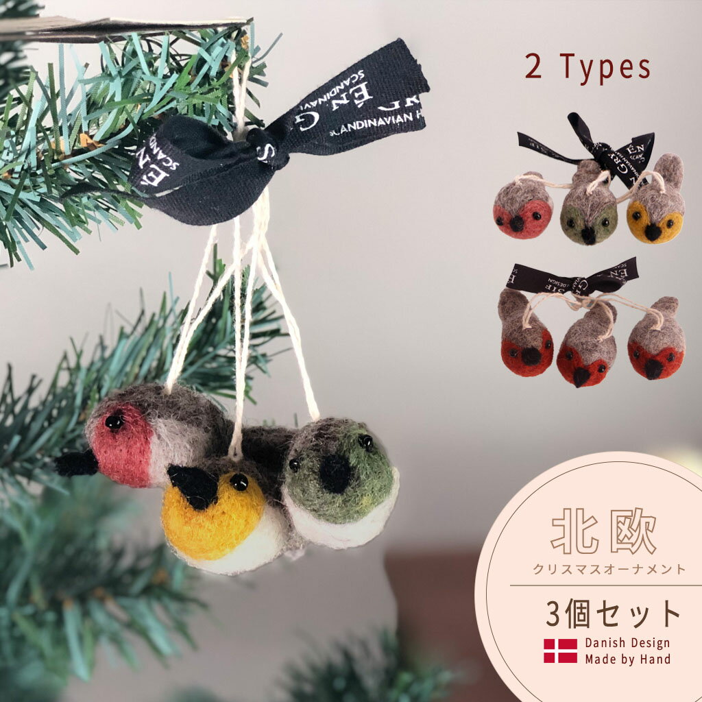 En Gry & Sif ミニバード・カラフルS 3個セット【メール便OK】ハンドメイド エングライ&シフ 北欧 クリスマスオーナメント クリスマス飾り フェルト 北欧雑貨 ストラップ クリスマスプレゼント フェアトレード 商品 デンマーク サンタクロース Maison Pou
