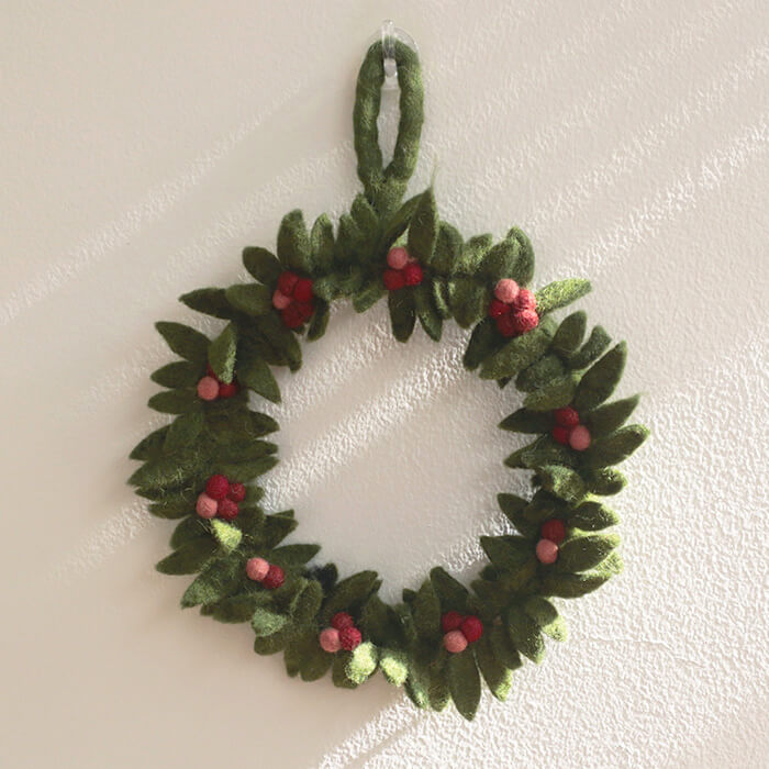 size:直径20×2.3cm前後 素材:ウール100% ワイヤー 吊るし紐付 ブランド : デンマーク En Gry&Sif エングライアンドシフ 生産国 : ネパール製(フェアトレード) ※天然素材、手作り品のため、色の濃淡やフォルムなどに 個体差がある場合がございます。 デンマーク En Gry&Sif クリスマスオーナメント 商品一覧はこちら クリスマスアイテム 商品一覧はこちらデンマーク生まれ、 『En Gry & Sif』の素朴なクリスマスインテリア。 デンマークのシンプルデザインとネパールの熟練技から生まれた、 『En Gry & Sif エングライアンドシフ』のクリスマスインテリア。 グリーンリースにベリーがあしらわれたラウンドリースです。 エングライアンドシフは、ネパールの自然と文化と人に魅せられたデンマーク人姉妹によって、 2002年に設立されたフェルト製品のブランド。 製品はすべてネパールの職人さんによるハンドメイドで、 ひとつひとつ風合いが異なる、1点モノ。 そこにデンマークのシンプルなデザインが加わることによって、 素朴でかわいいだけではない洗練された仕上がりになっています。 もちろん素材にもこだわり、すべてニュージーランド産の天然ウールを使用しています。 1つだけでもクリスマスを感じさせてくれる存在感。 どこかぬくもりを感じる、何とも愛らしいオーナメントです。 玄関やお部屋に吊るしてお楽しみください。 フェアトレード認証について。 エングライアンドシフは、2009年に世界フェアトレード機構のフェアトレード認証を取得しています。 ネパールは世界で最も貧しい国のひとつ。 エングライアンドシフは、ネパールの前向きな発展に貢献するため、 特に女性の仕事をサポートするため、良質で持続可能な雇用を創出することに取り組み続けています。 デンマーク En Gry&Sif クリスマスオーナメント 商品一覧はこちら クリスマスアイテム 商品一覧はこちら ストローオーナメント・ガーランド 商品一覧はこちら スウェーデン Larssons tra ラッセントレー 商品一覧はこちら