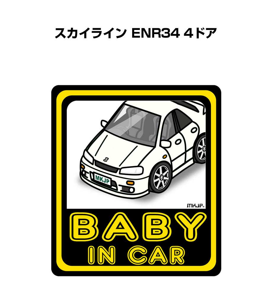BABY IN CAR ステッカー 2枚入り ベイビーインカー 赤ちゃんが乗ってます 安全運転 シール かわいい ニッサン スカイライン ENR34 4ドア 送料無料