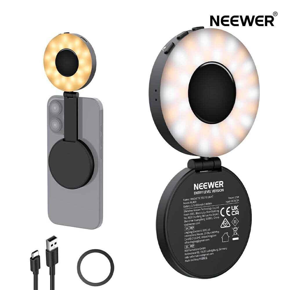 【P10倍UP中!】NEEWER ENTRY LEVEL VERSION 自撮りライト スマホリングライト マグネット式 MagSafe iPhone対応 小型ビデオライト 高演色性 1W 2700K-7500K CRI95+ 840lux/0.2m 4段階調光 クリップ式女優ライト ノートパソコン/スマホ補助照明 金属製 NL32R