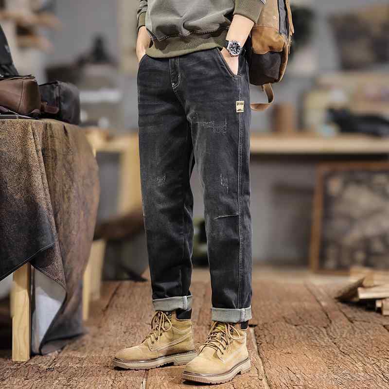 メンズ 服 シンプル ファッション オシャレ 大人 かっこいい 大きいサイズ ストリート 紳士服 アメリカンヘビー ウォッシュ スクラッチ ジーンズ 秋 ストレート カジュアル ズボン