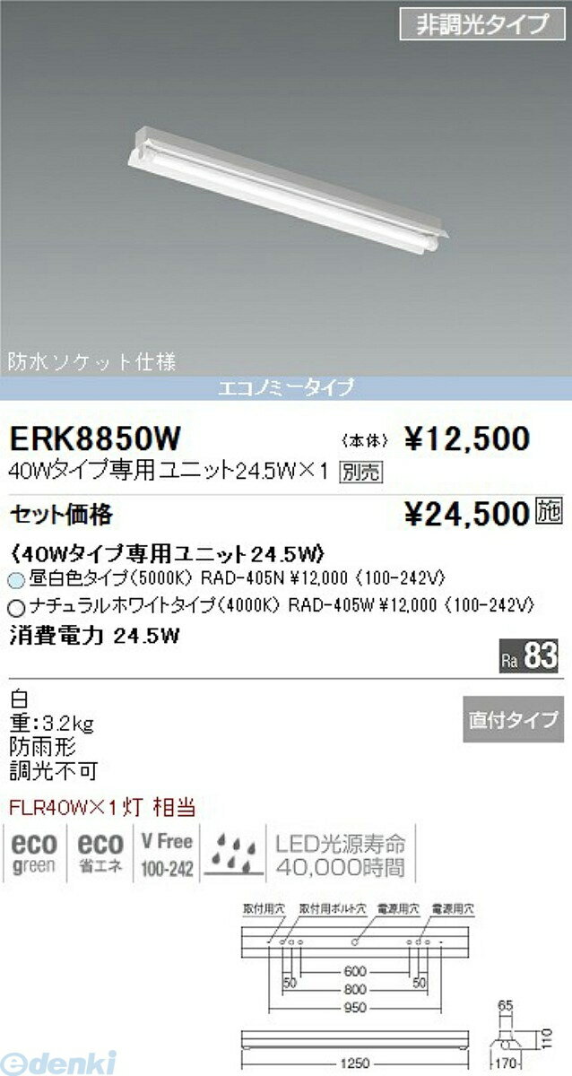 【ご一読下さい】・こちらの商品はメーカー取り寄せ商品となります。納期がかかる場合がございますので、ご注文前に在庫のお問合せをお願い致します。・メーカーに在庫が無く、商品をご用意できない場合、納期2か月を目途にご注文の商品をキャンセルとさせていただいております。・取付工事は専門業者様へご依頼をお願い致します。・取付方法につきましては、ご購入前にメーカーサイト等をご確認下さい。・商品画像に電源別売、ランプ別売の記載がある商品については本体のみの販売となります。専用電源・ランプが必要の場合は別途ご購入をお願い致します。・ご注文確定後のキャンセル・返金・返品・交換を承ることは出来かねます。不良品の場合のみ返品・交換対応致します。ERK9584W_SAD423X LEDベースライト ENDO 遠藤照明