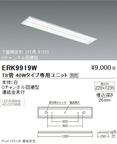 ERK9919W 遠藤照明 埋込下面開放 T8 40W×2【ユニット別売】