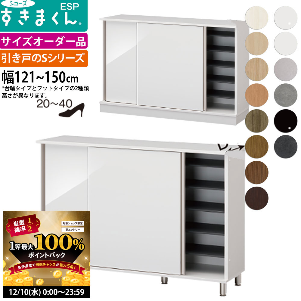 すきまくん シューズ ボックス ESP-LS-121150 ESP-FLS-121150 幅121-150×奥行40.5×高さ:台輪タイプ95.7 フットタイプ100.2cm_ シューズラック 幅 引戸ロータイプ セミオーダー フジイ 完成品 日本製 おしゃれ 北欧 家具 すきま くん_