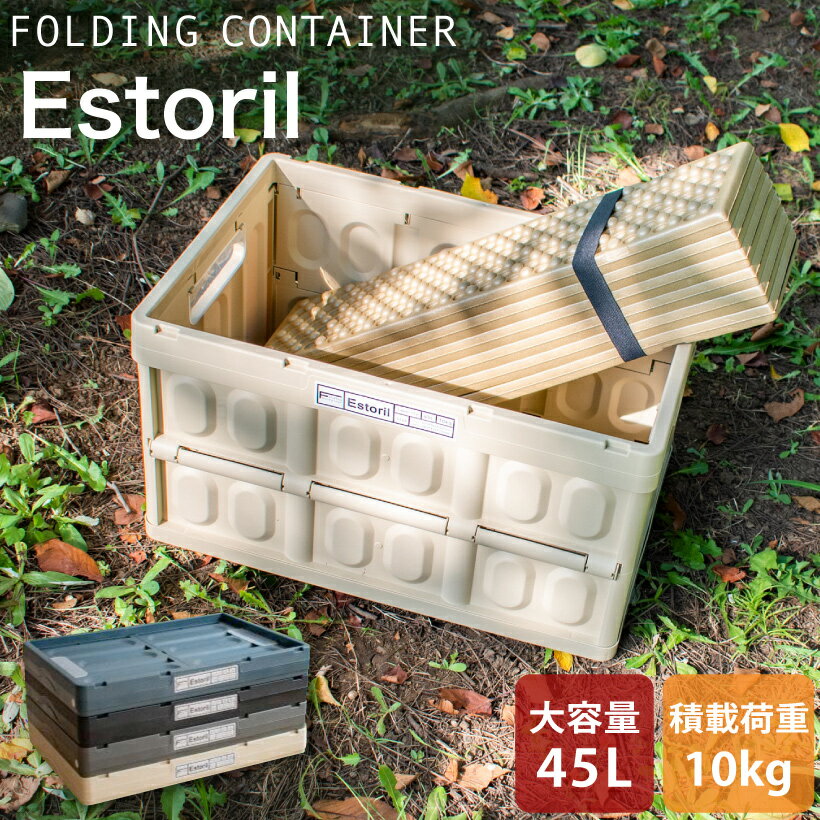 コンテナ 折り畳み ESTORIL エストリル 45L スロウワー コンテナボックス フォールディングコンテナ 折りたたみ コンテナ 収納ケース 大型 小物入れ 積み重ね スタッキング アウトドア キャンプ 収納 ボックス 屋外 頑丈 おしゃれ 黒 サンド ベージュ オリーブ SLOWER