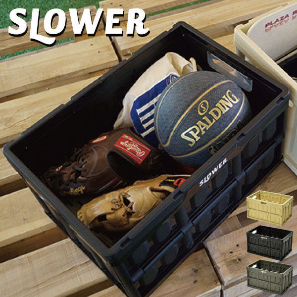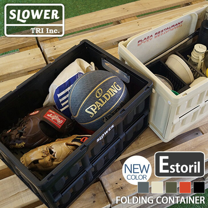 【SLOWER】 コンテナ 折り畳み おしゃれ アウトドア インドア キャンプ レジャー 釣り ガーデニング 収納 大容量 軽量 スリム コンパクト ガレージ 子ども部屋 おもちゃ 片付け ブラック ベージュ カーキ ブルー スロウワー エストリル SLOWER Estoril