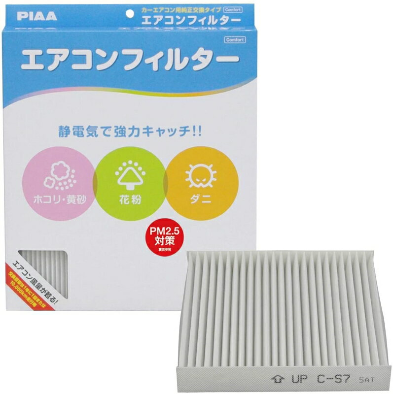 メーカーサイトで詳細を確認⇒こちらPIAA製 エアコンフィルター コンフォートシリーズ EVC-S7【適合代表車種】■スズキ代表車種アルト/エコ:年式H25.03~H26.1スペーシア/カスタム:年式H25.03~H29.11ワゴンR:年式H24.09~H29.01■マツダ代表車種フレア/ワゴン:年式H24.10~●その他適合車種については適合表をご参照ください。■PIAA製のハイパフォーマンスフィルター静電気で微粒子までキャッチする特殊製法の帯電フィルターと、濾過性、通気性に優れた不織布フィルターの2層濾紙で強力に空気の汚れをキャッチ・1層目:スタンダード集塵層(不織布フィルター)[大きなホコリ、ダニ、砂埃、花粉、黄砂]・2層目:高集塵層(帯電フィルター)[PM2.5、雑菌、ディーゼル粉塵等の微粒子]■【注意】家庭用のエアコン同様、車内の空気を清潔にたもつ為に、新しいフィルターへの交換が定期的に必要です。■車内の気になるニオイ等、エアコンフィルターを交換することで改善できます。