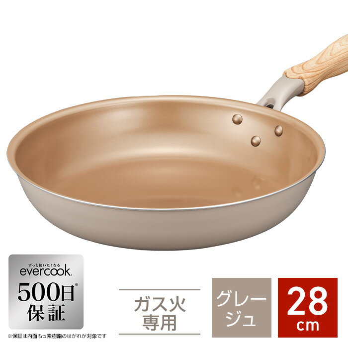 【ガス火専用・グレージュ】軽量フライパン 28cm EGFP28GRG2 ガス火専用 グレージュ 数量限定 フッ素コーティング/丈夫で長持ち ドウシシャ DOSHISHA エバークック 500日保証のフライパンevercook 【送料無料】