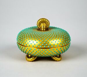 【送料無料】キッチン用品・食器・調理器具・陶器 アンティークコールポート宝石の磁器のゴールドカバーボックス例外的なターコイズエナメルAntique Coalport Jeweled Porcelain Gold Covered Box Exceptional Turquoise Enamel