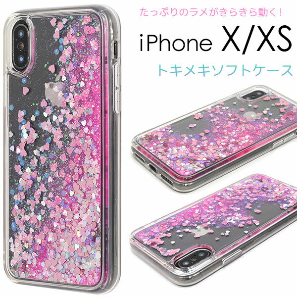 【iPhone X/iPhone XS用】背面用/たっぷりラメトキメキソフトケース(アイフォンケース iphonex iphonexs アイフォンテンエス シンプル バックカバー シンプル キラキラ ラメ ハート 女子力 かわいい 可愛い ストラップ穴あり 透明 ギフト【送料無料】[M便 1/3]