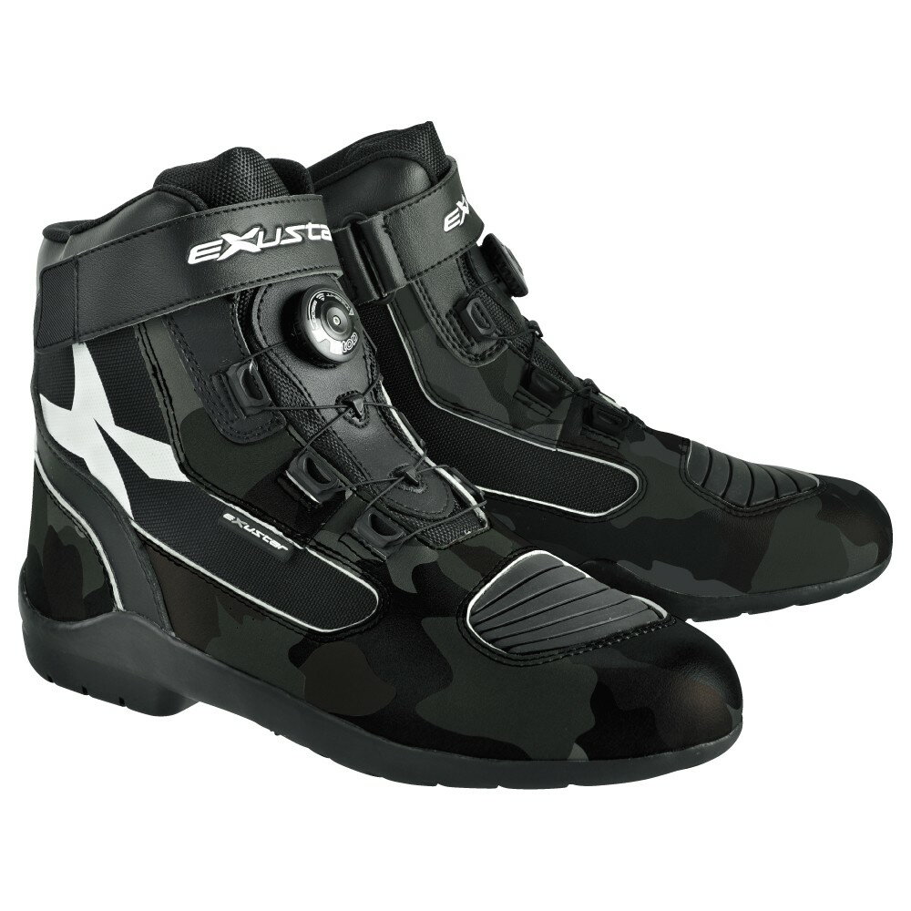 EXUSTAR エグザスター E-SBT271W バイクブーツ ダイヤル調整式 レーシングショートブーツ[ブラックカモ]ライディングシューズ ライディングシューズ フットウェア