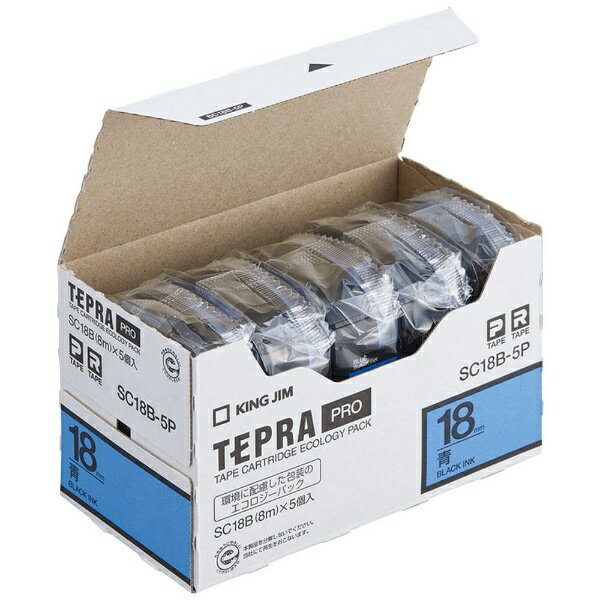キングジム|KING JIM カラーラベル(パステル)テープ エコパック 5個パック TEPRA(テプラ) PROシリーズ 青 SC18B-5P [黒文字 /18mm幅]
