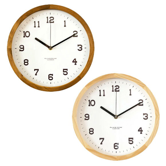 掛け時計 アナログ 木製 天然木 木枠 スイープ 音がしない 静音タイプ 北欧 おしゃれ アイナ ウッドクロックL (PD-EIN-290)
