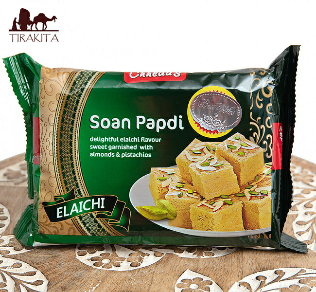 ■インドのお菓子 ソーン パブディ カルダモン味 - SOAN PAPDI ELAICHI[Cheeda's]の詳細 ブランドCHEEDA's(チーダズ)原材料・成分ひよこ豆粉、小麦粉、パーム油、砂糖、カルダモン、アーモンド、ピスタチオ名称菓子商品の内容量240グラム温度帯指定常温: 室温での保管が可能です製造国インド商品サイズ約16cm x 11cm x 5cm 約250g賞味期限2026年03月11日かそれ以降の商品をお届けします大ロットでのご購入について飲食店様、雑貨店様など、業務用の数の多いご注文も大歓迎です。在庫がある分は即納できます。配送についてあす楽についてクーポンプレゼントキャンペーンについてこちらの商品は「商品レビューで200円OFFクーポン プレゼント」キャンペーンの対象商品です。以下の画像をクリックで、キャンペーンの詳細ページをチェック!正面から撮影しました斜めから撮影しました裏面の成分表示ですサイズ比較のために手に持ってみましたパッケージのアップです中を開けてみました中を開けてみました。さっくり、ほろほろ ■インドの大人気お菓子 グラスファイバーに似た食感のインドの代表的な甘いお菓子です。飴を糸状に細長く伸ばして層にした、舌の上でとろける食感がたまらないお菓子です。 ■ミルクとカルダモンの清涼感をMix カルダモンの清涼感溢れる風味は、とても個性的な味わいです。ぜひお試しください。SOAN PAPDIの正体は・・・※ご注意、当店で仕入れているSOAN PAPDIは、衛生環境が整った工場で作られたものです。動画の工場で作られたものではありません。