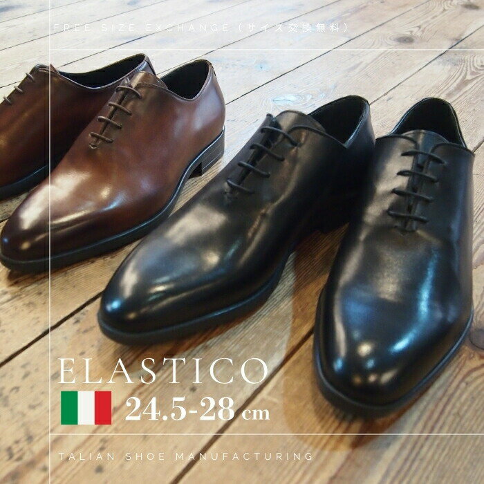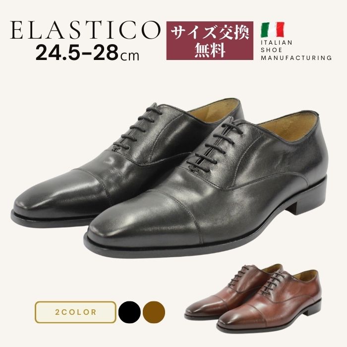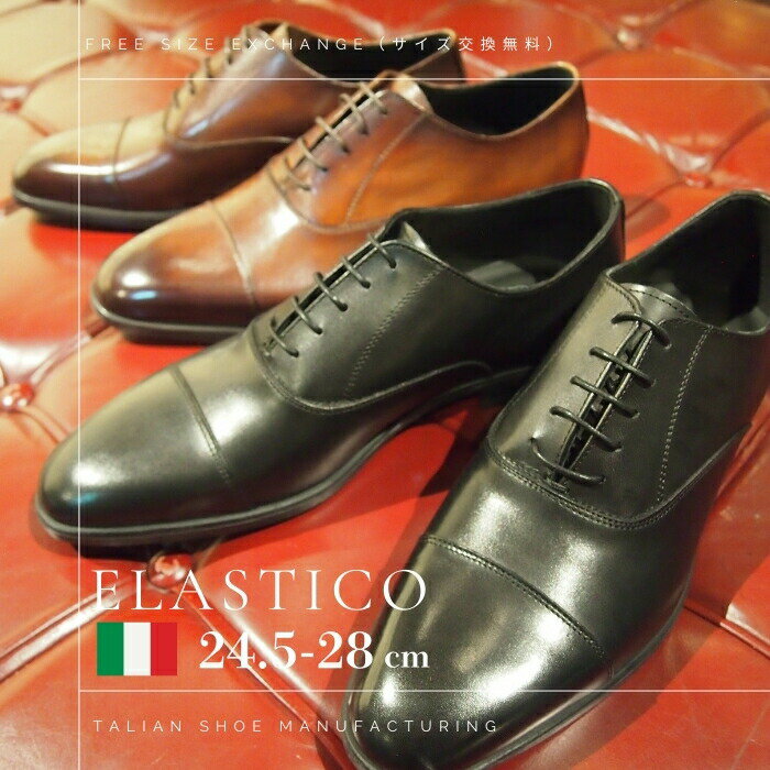 ビジネスシューズ 本革 メンズ 靴 Elastico エラスティコ 105 イタリア製 ブラック ブラウン 通勤 内羽根 フォーマル 革靴 ストレートチップ 結婚式 ビジネスカジュアル 幅広 革底 甲高 大きいサイズ 黒 紐靴
