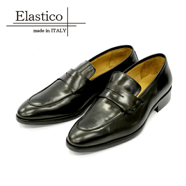 ビジネスシューズ 本革 メンズ 靴 Elastico エラスティコ 006 イタリア製 ブラック ブラウン 通勤 内羽根 フォーマル 革靴 ストレートチップ 結婚式 ビジネスカジュアル 幅広 革底 甲高 大きいサイズ 黒 紐靴
