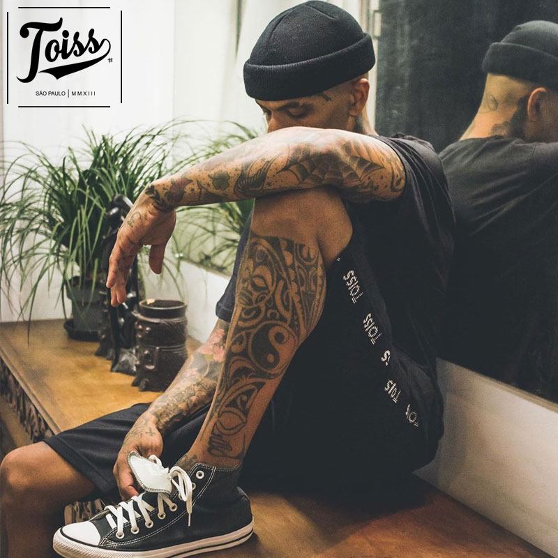 【TOISS】ELASTICOサイドテープスウェットハーフパンツ ブラック ネイマールブランド