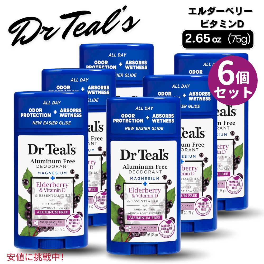 【最大2,000円クーポン11月27日01:59まで】6個セット Dr Teals ドクターティールズ Aluminum Free Deodorant 75g アルミニウムフリー デオドラント エルダーベリー&ビタミンD Elderberry 2.65 oz