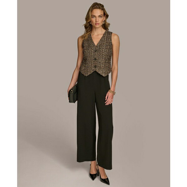 ダナ キャラン ニューヨーク レディース ワンピース トップス Donna Karan Women's Tweed-Bodice Wide-Leg Jumpsuit Elderberry