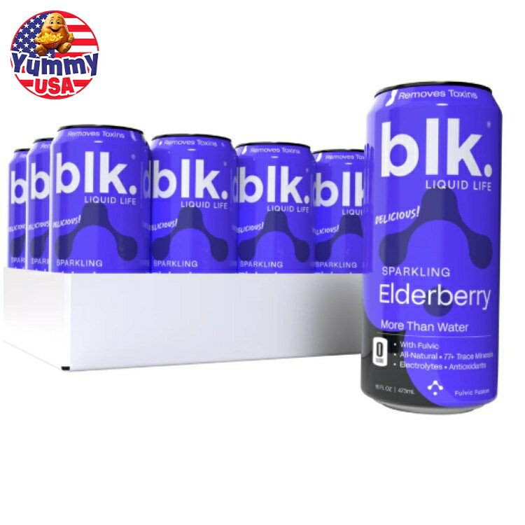 【最大500円OFFクーポン有】blk.天然アルカリミネラルスパークリングウォーター エルダーベリー風味 (473ml) 12缶パック BLK Cans Elderberry (12/16oz) 日本未発売 大容量 【お取り寄せ商品】