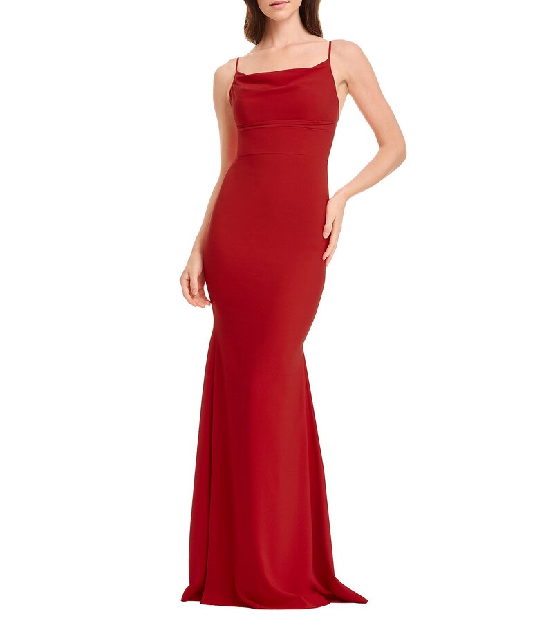 ドレスザポプレーション レディース トップス ワンピース ニット Dress the Population Elina Spaghetti Strap Cowl Neck Knit Mermaid Gown Rouge