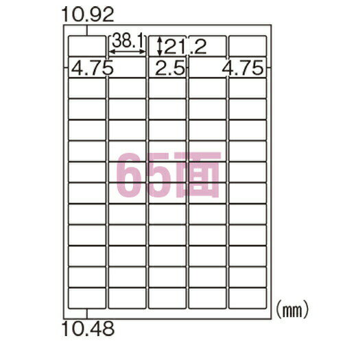 エコノミーラベル 10面 余白なし 各種プリンタ(レーザ・インクジェット・コピー機)でマルチに印刷可能。 カラーレーザプリンタ、カラーコピー機にも対応しています。 連続給紙が可能なので、大量に印刷したい場合にも便利です。 その他のプリンタ用紙はこちらから 入数 100シート サイズ A4 210×297mm ラベルサイズ 105x59.4mm 坪量 144g/m2程度 紙厚 0.15mm 面付け 10面(2×5)