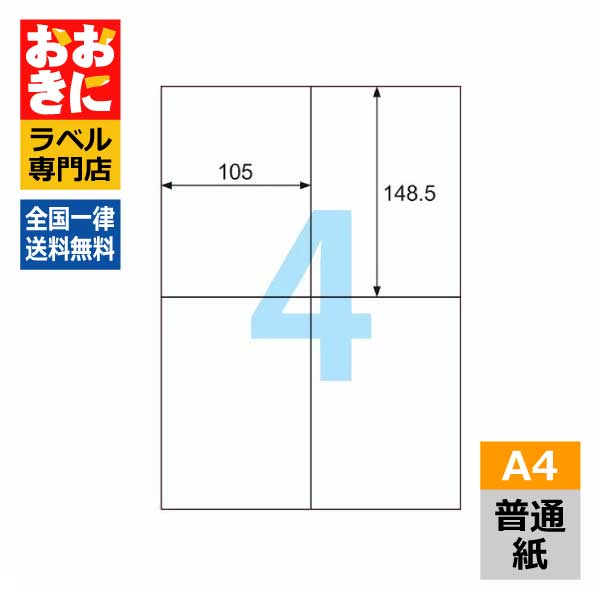 ELM003S ヒサゴ ラベルシール エコノミーラベル A4判 4面 1片サイズ105mm×148.5mm 上下左右余白なし 荷札ラベル 棚ラベル 宛名ラベル インクジェットプリンタ・レーザープリンタ適合 マルチプリンターラベル